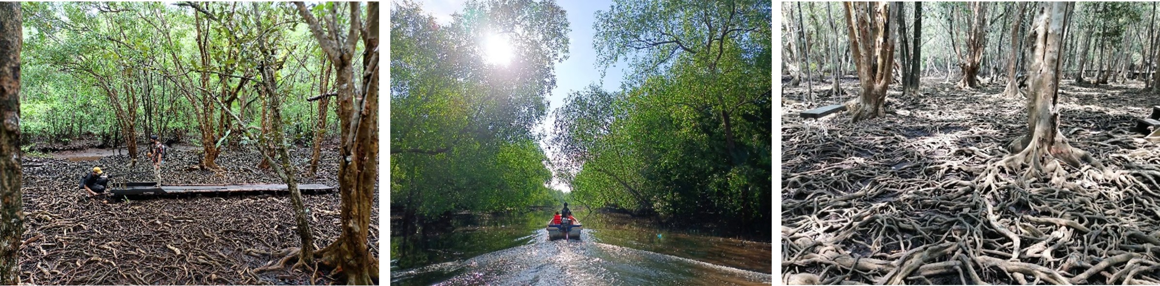 การเดินทางมาที่นี้ต้องใช้เรือในการเดินทางเข้ามาใช้เวลาประมาณ 10 นาที ก็จะเจอรากไม้ที่แผ่กิ่งก้านอยู่บนหน้าดินบนพื้นที่หลายสิบไร่ เป็นสถานท่องเที่ยวที่ให้บรรยากาศเหมือนป่าดึกดำบรรพ์ ต้นไม้นี้มีชื่อว่า “ต้นตะบูน” ลักษณะลำต้นคดงอ เปลือกมีสีเทาอมขาวหรือสีน้ำตาลแดง เติบโตได้ดีในน้ำกร่อย และยังมีกิจกรรมโยนโบว์ลิ่งโดยใช้รากของต้นตะบูนเป็นพินแล้วใช้ลูกตะบูนแทนลูกโบว์ลิ่งมองดูแล้วก็สนุกและสวยแบบแปลก ๆ