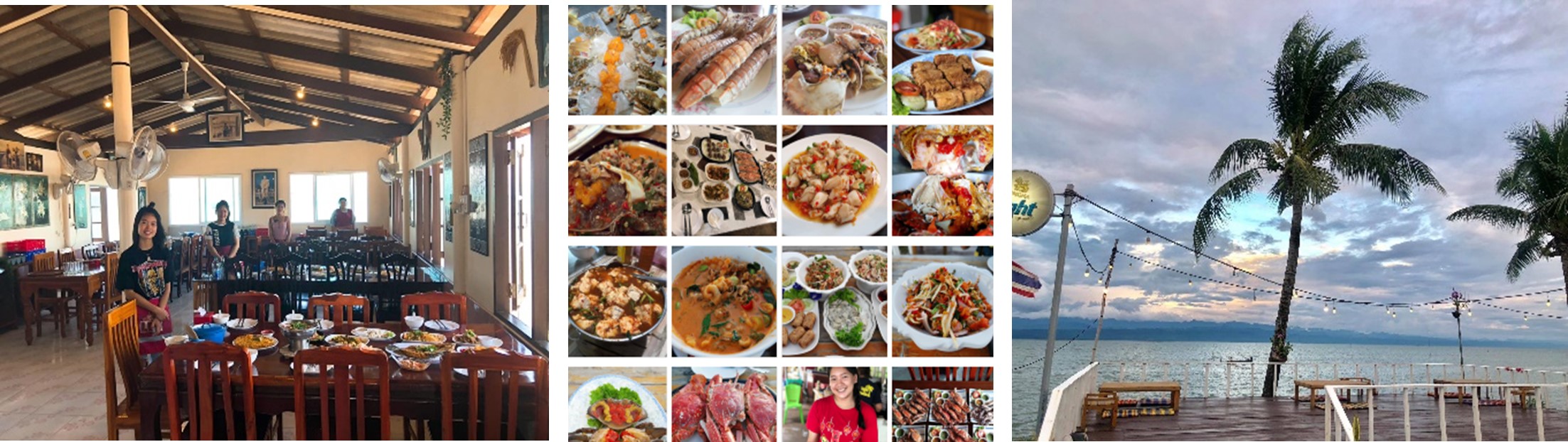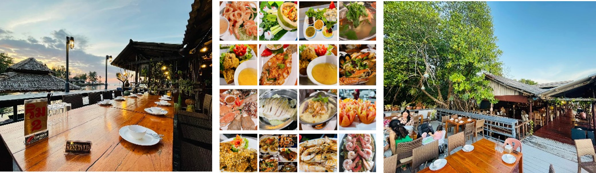 ร้านนี้ขึ้นชื่อ วิวสวย ซีฟู้ดเด็ด เป็นร้านอาหารสไตล์ท้องถิ่นในบรรยากาศใกล้ชิดธรรมชาติ อาหารที่ทางร้านแนะนำมี 4 อย่าง ได้แก่ ปูนึ่ง, ปูนิ่มทอดกระเทียม, ข้าวผัดมันปู, ต้มส้มทะเล และยังมีอาหารอีกหลาย ๆ เมนูที่อร่อย ๆ ลองมาทานดู เปิดครัว 10 โมงเช้า ปิดครัว 2 ทุ่ม แนะนำให้ไปถึงร้านก่อน 5 โมงเย็นจะดีมาก