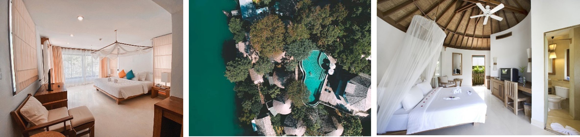 มีห้องทั้งหมด 4 แบบ คือ Beachfront pool villa, Deluxe pool villa, Deluxe villa, Twin villa แต่ละแบบก็มีการตกแต่งที่ต่างกัน และให้ความเป็นส่วนตัวมาก ๆ มีมุมให้ถ่ายรูปลงสตอรี่ทั่วทั้งรีสอร์ทและมีกิจกรรมให้ทำอย่างเช่น พายเรือคายัค แพดเดิ้ลบอร์ด